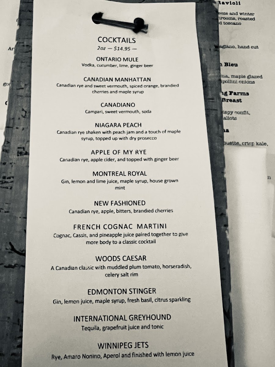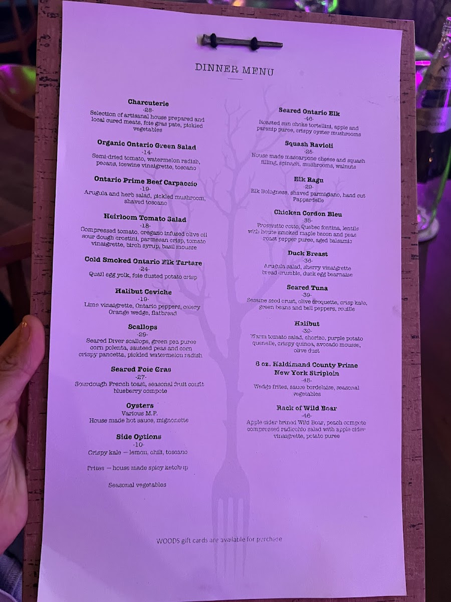Woods Restaurant & Bar offers a thoughtfully curated menu that reflects its focus on refined Canadian cuisine with an emphasis on local ingredients and hearty, elevated dishes. The menu strikes a balance between sophisticated plates and approachable flavors, making it suitable for everything from intimate date nights to special occasion dinners.